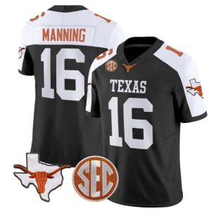 T.Longhorns #16 Arch Manning State Map and Sec Patch Vapor Football Black Alternate Stitched American College Jerseys